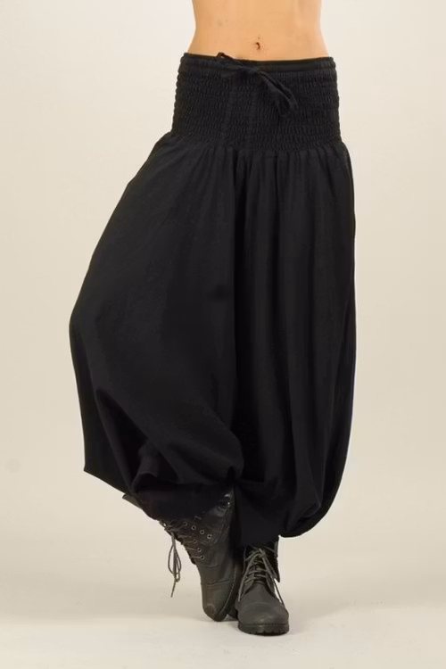 One size haremsbyxa för både killar och tjejer. Stilrena i svart med bred elastisk resår i midjan med snörning. Passar till storlekar 36-40 (S-L). Behagliga svarta byxor i 100% bomull.